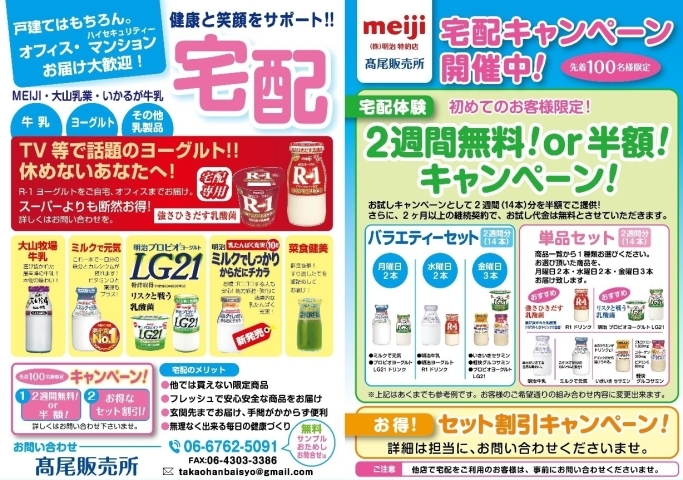 三島市 沼津市 富士市 富士宮市の牛乳宅配 牛乳配達サービス 明治みるく堂本舗 チラシ配布サービス 牛乳宅配のお客様へ無料ポスティング