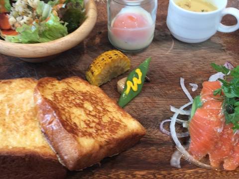 一番町三丁目 カフェ プレートランチ けやきカフェ 甘いニンジングリルに エッグスラットやフレトーもある贅沢プレート メインはサーモンアボカドにしてみたよ