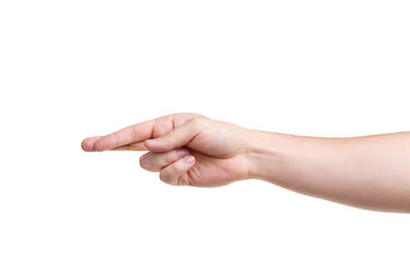 男性の手は 標識を作るします 男の手は 人差し指と中指を交差しました 白い背景上に分離 クローズ アップ の写真素材 画像素材 Image
